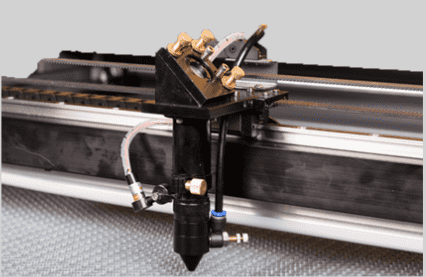 The laser head of industrial laser engraving machine enclosed jet design protects the lens from dust and keeps the lens highly translucent.