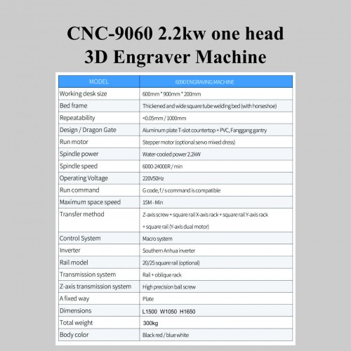 CNC-9060 2.2kw one head 3D Engraver Machine